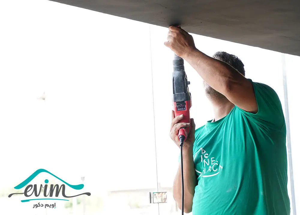 - نصب پایههای دیواری: ابتدا با استفاده از دریل، پایههای دیواری پرده را در محل مناسب نصب کنید. این پایهها معمولاً به همراه پرده عرضه میشوند و به راحتی روی دیوار یا سقف نصب میشوند.