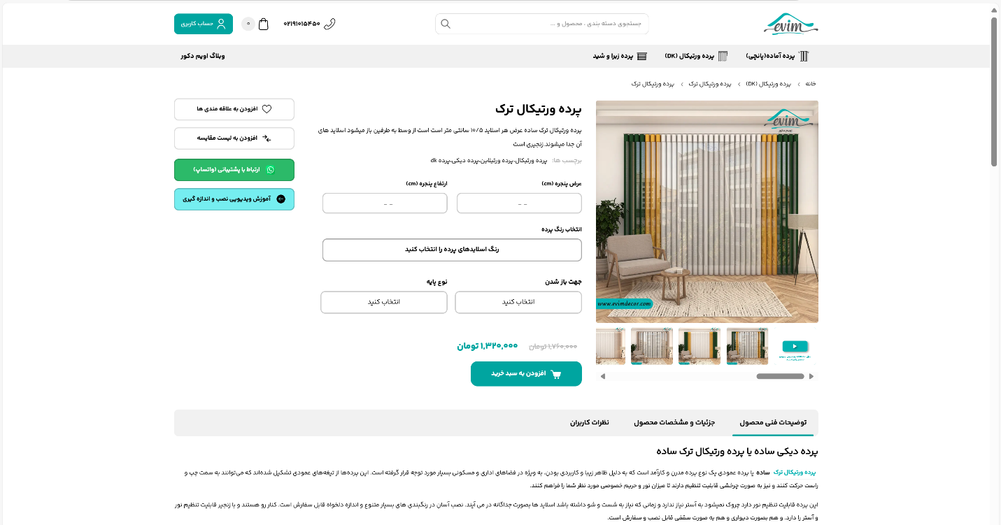 - بررسی جزئیات و افزودن به سبد خرید: پیش از نهایی کردن خرید، میتوانید جزئیات محصول، قیمت، و سایر ویژگیها را یک بار دیگر مرور کنید. پس از اطمینان از انتخابها، پرده موردنظر را به سبد خرید اضافه کنید.