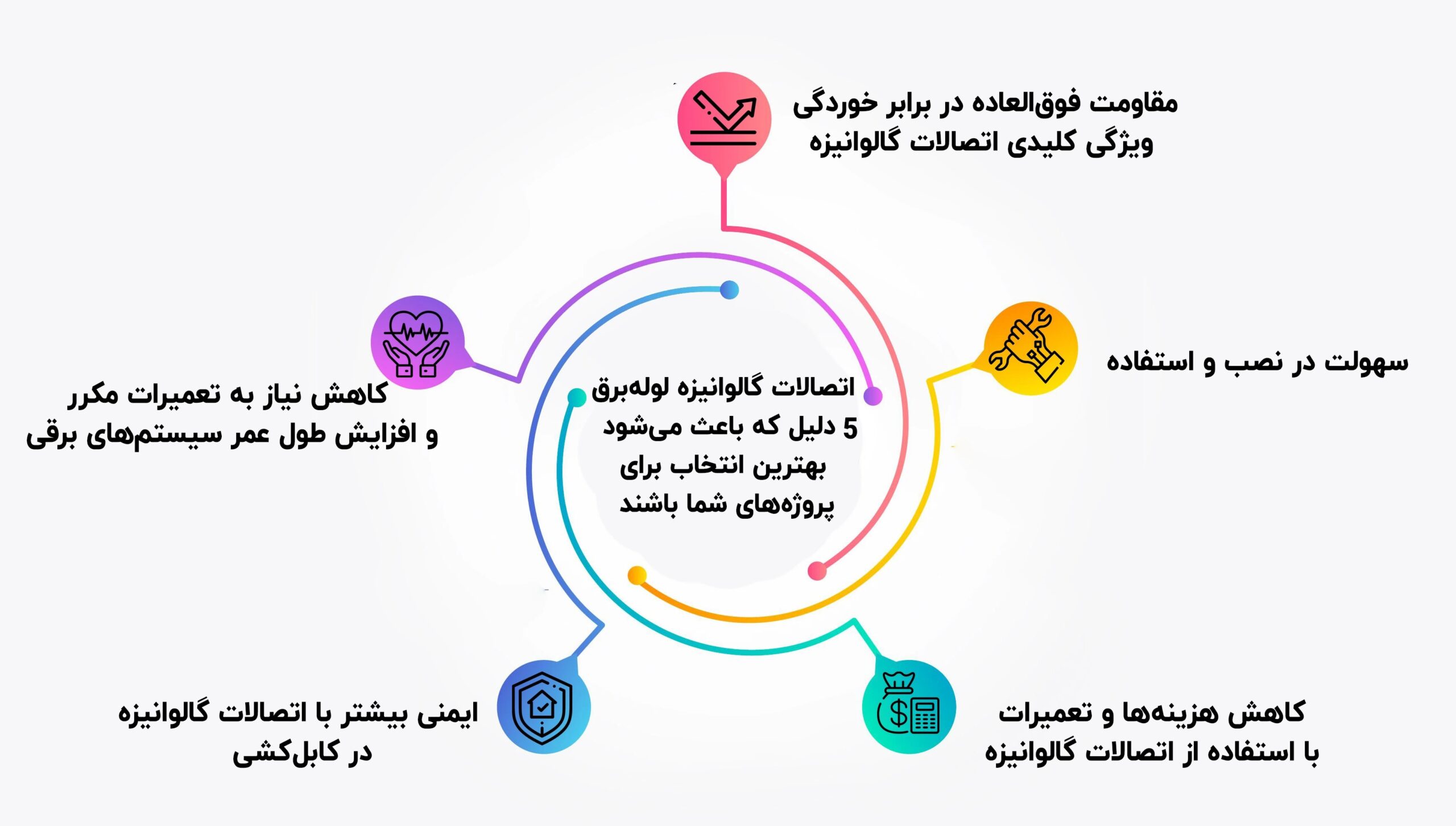 2. ایمنی بیشتر با اتصالات گالوانیزه در کابلکشی