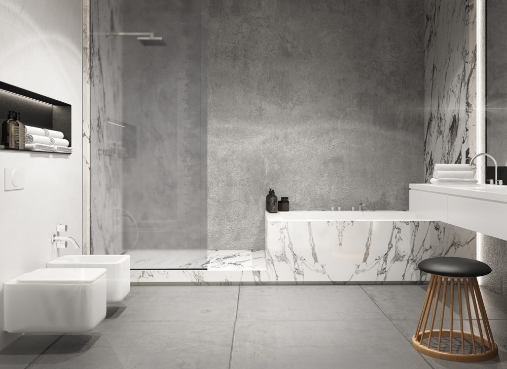 آشپزخانه و سرویسهای بهداشتی: استفاده از بتن اکسپوز در کانتر آشپزخانه یا دیوارهای سرویس بهداشتی، ظاهری مدرن و تمیز به فضا میبخشد.