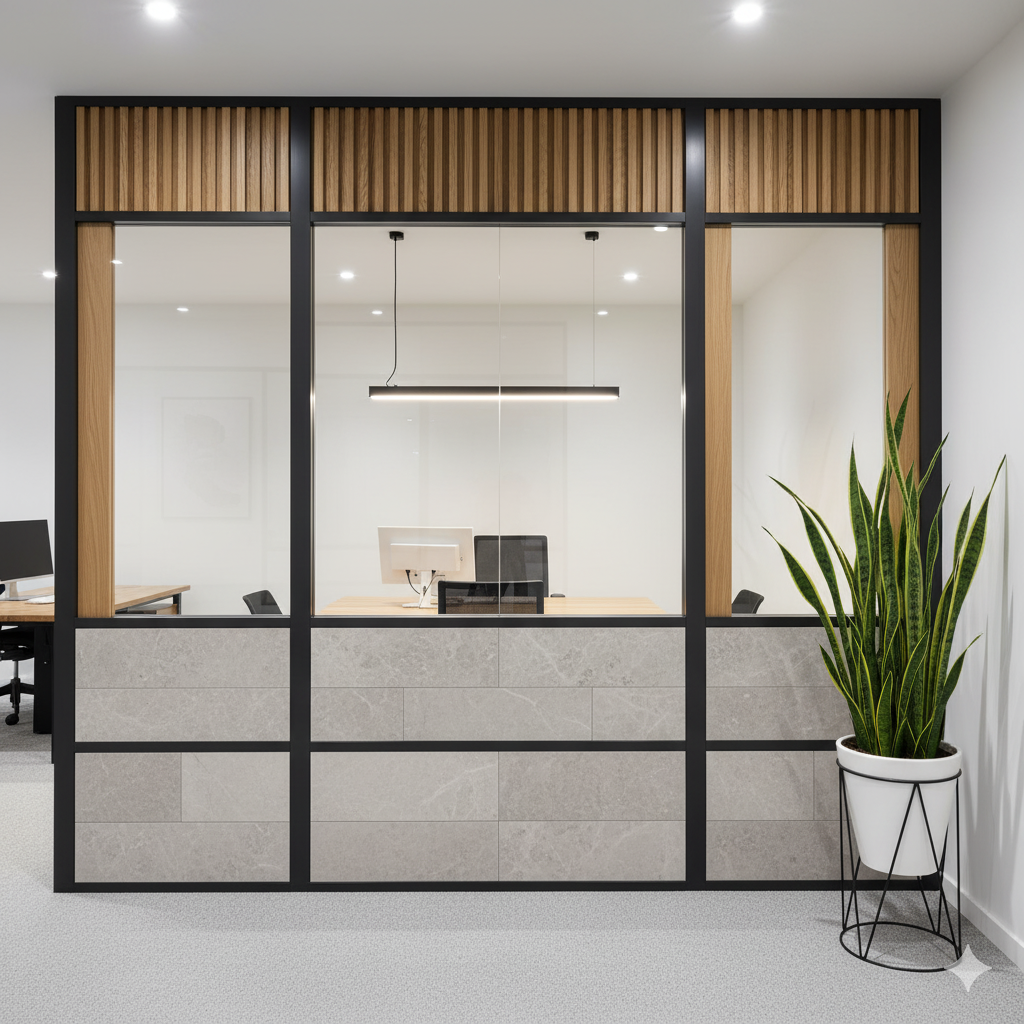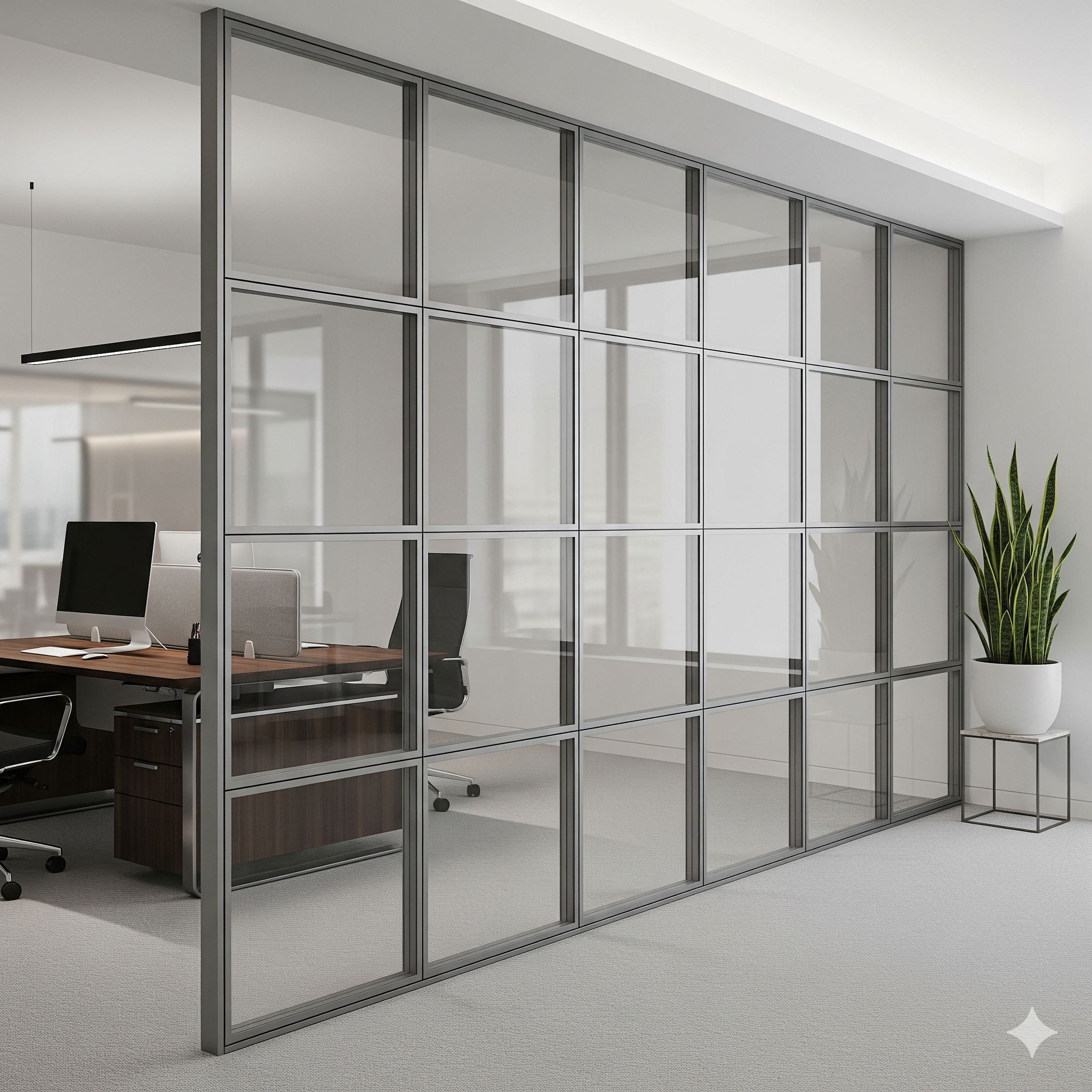 - پارتیشنهای داخلی: مناسب برای ادارات و منازل مدرن، ترکیب شیشه و پروفیل.